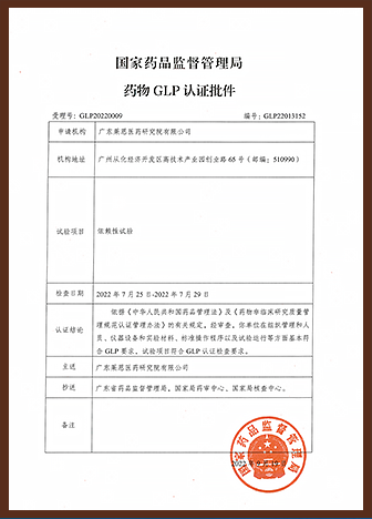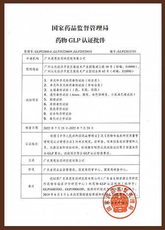 民营机构第一家、华南首家(目前唯一一家)拥有NMPA十项全项GLP认证资质
